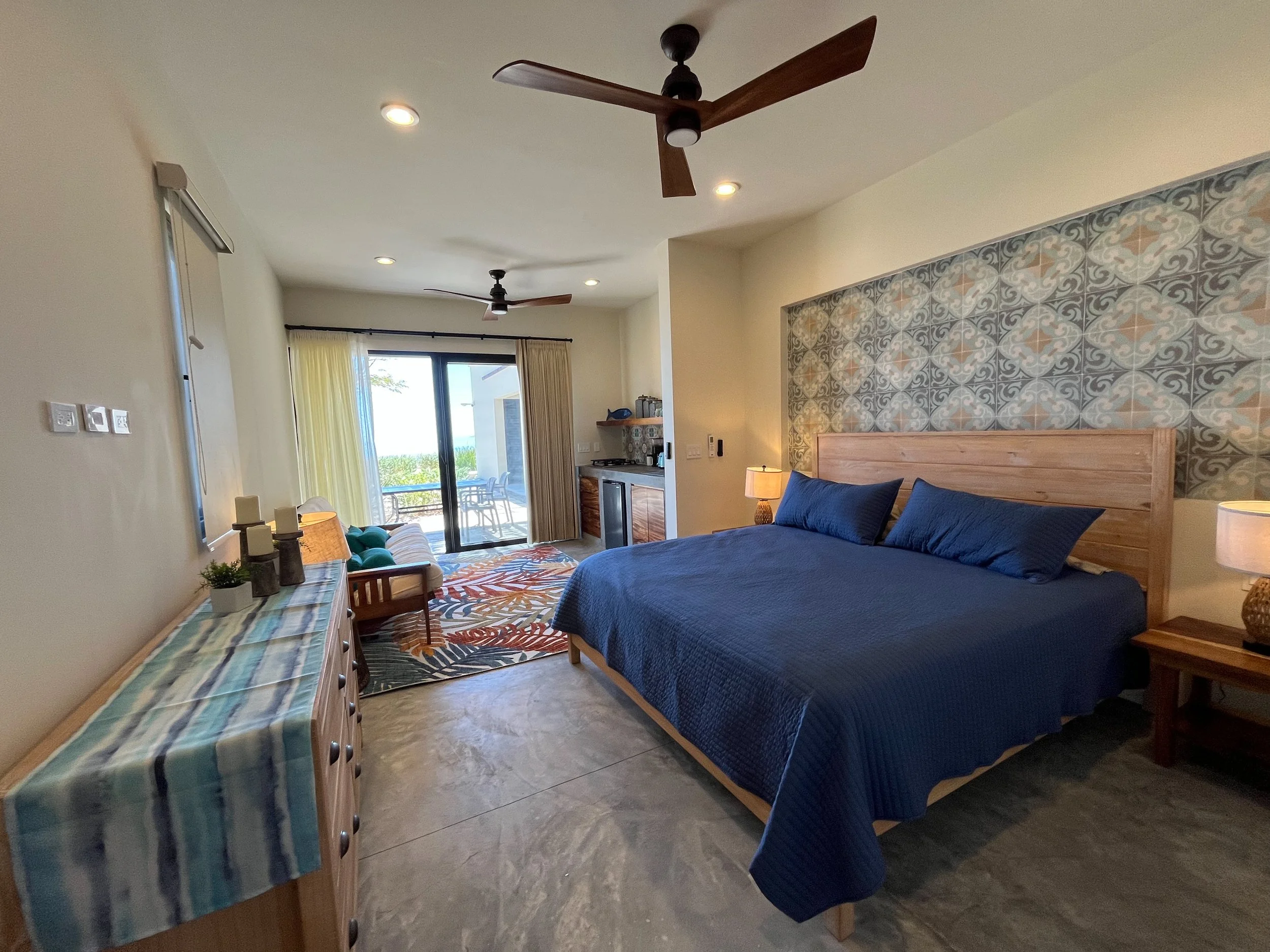 Tucked in under the main home with its own separate entry and walkway, the spacious casita offers its own magnificent ocean views and provides a peaceful escape with all the comforts of home. Inside, you’ll find a king bed, a cozy futon for additional sleeping space, a large private bathroom, and a convenient kitchenette. Step out onto the private patio with table and chairs and enjoy a quiet moment under the Baja sky—perfect for guests seeking a little extra privacy.